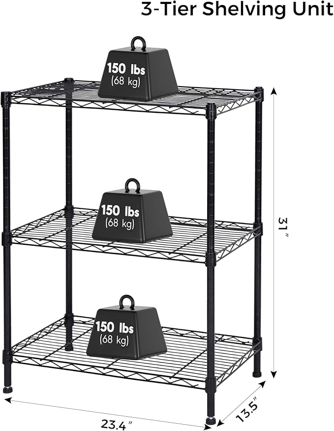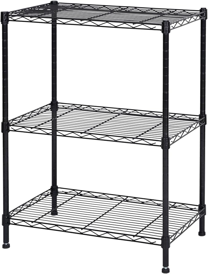 Homeiju 3-Shelf Storage Rack,Adjustable Height Metal Shelving Unit,Heavy Duty Storage Shelving Unit,Wire Rack Shelving,Garage Organizer for Home,Kitchen,Office,Pantry,Garage(13.5"D x 23.4"W x 31"H)