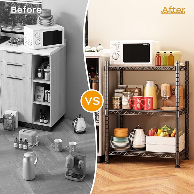 - CONVENIENT and PRACTICAL: The 3-tier Wire Shelving provides convenient storage space for easy access to tools and supplies. Without taking up too much space, it provides you with extra storage space, say goodbye to clutter and create a relaxing and comfortable home