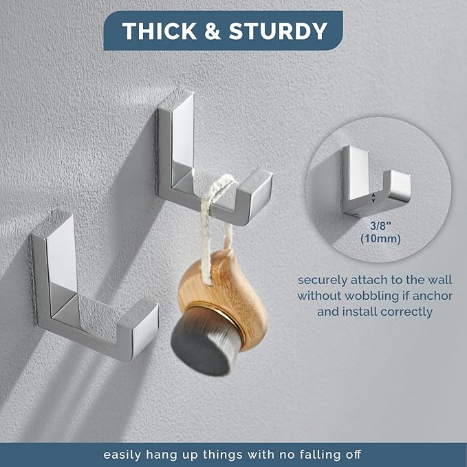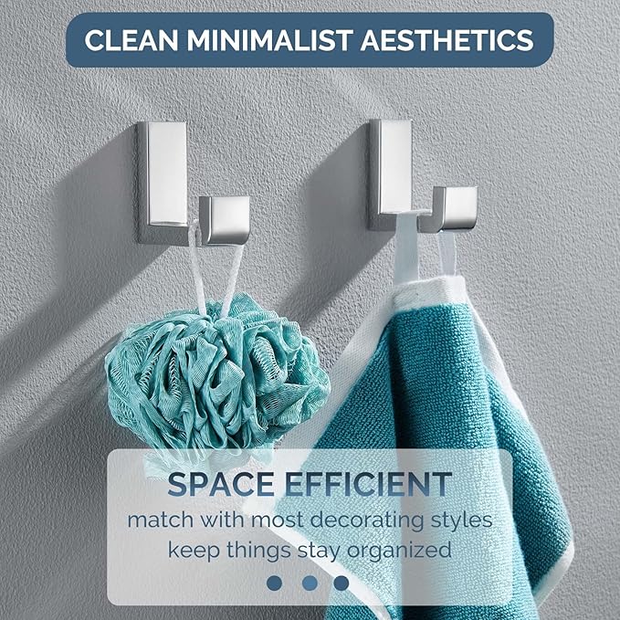 Angle Simple Towel Hooks, SUS 304 Stainless Steel Robe Coat Hooks for Bathroom Wall, Polished Chrome, 2 Pack