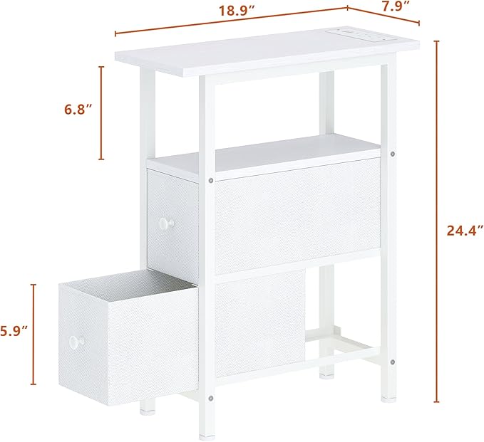 - ใ๐๐๐ซ๐ ๐ ๐๐ญ๐จ๐ซ๐๐ ๐ ๐๐จ๐ซ ๐๐ฆ๐๐ฅ๐ฅ ๐๐ฉ๐๐๐๐ฌใThis narrow side table boasts a slim, lightweight design to easily fit into small spaces while still providing plenty of storage. You can place your lamp, phone, snacks, books, game consoles on the 2 open shelves, and store some private items in the 2 drawers.