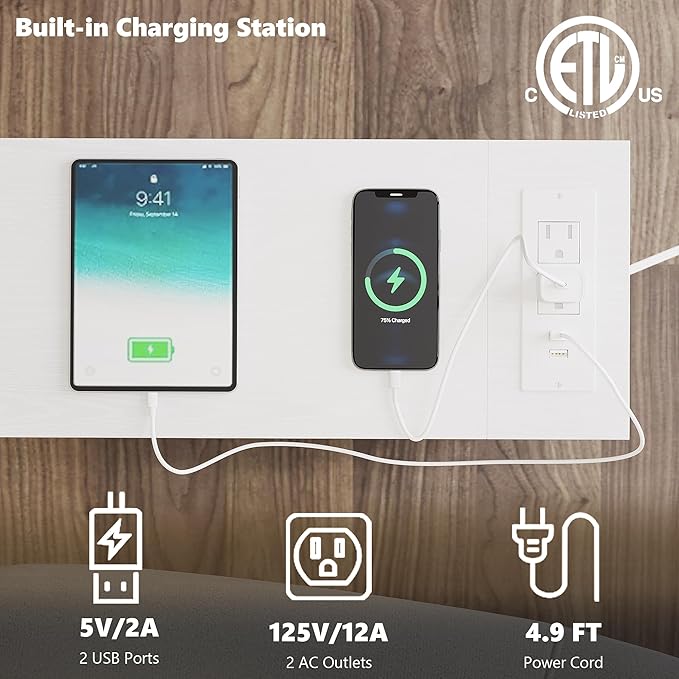 - ใ๐๐ฎ๐ข๐ฅ๐ญ-๐ข๐ง ๐๐๐ ๐๐ง๐ ๐๐ฎ๐ญ๐ฅ๐๐ญ๐ฌใThis slim side table features a charging station with 2 outlets and 2 USB ports๏ผyou can charge your phone, lamp, or game console at the same time. The 4.9 ft extension cord can help you charge freely without being limited by wall sockets.