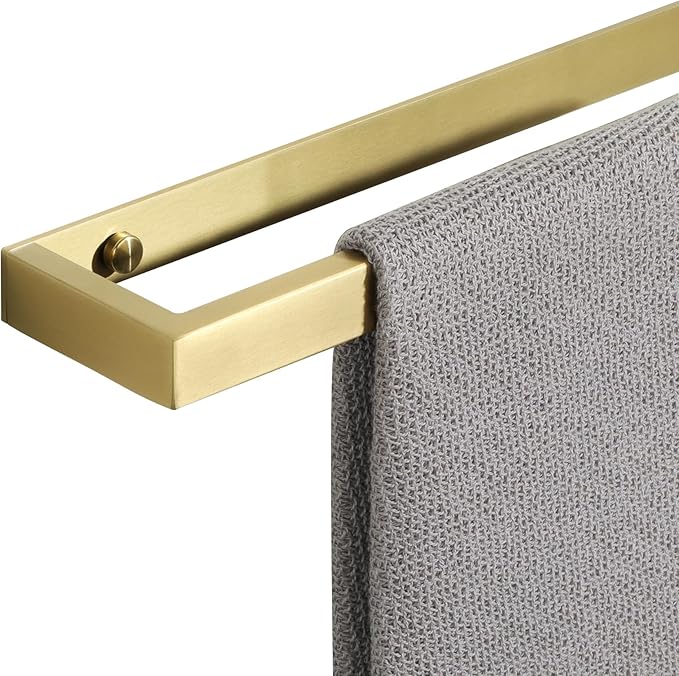 - 【Brushed Gold Finish】The towel holder is finished by dazzling gorgeous golden and sealing glaze, beautiful color, not easy to oxidize and fade; The shiny look makes it a focal point everywhere, and is also perfect for a variety of bathroom finishing styles.
