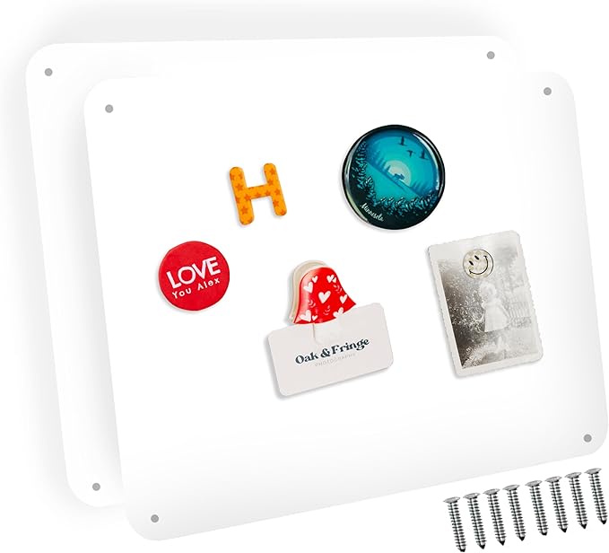 9 inches x 6.5 inches Stainless Steel Plate for Magnets, 3M Adhesive Back, Mounting Screws, Ideal for Magnetic Shelf, Spice Holders, Fridge Magnets. Mount Anywhere! (White, 2 Pack)