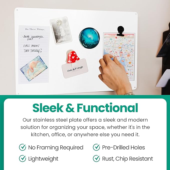 - Use Anywhere – Quickly turn any surface into a magnet board with this Stainless Steel Plate. The metal plate is easy to mount on walls, under your kitchen cabinets, on the inside or the side of cabinets and pantry spaces. Use it anywhere you need a magnetic surface!