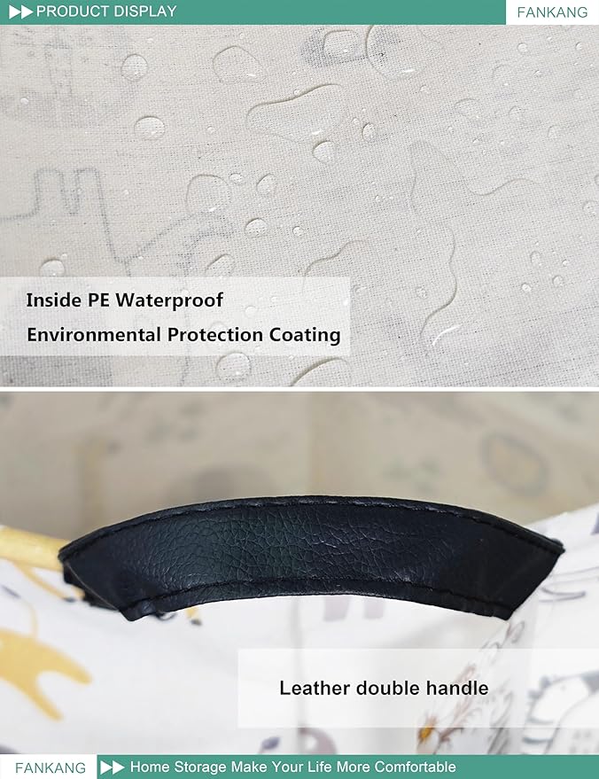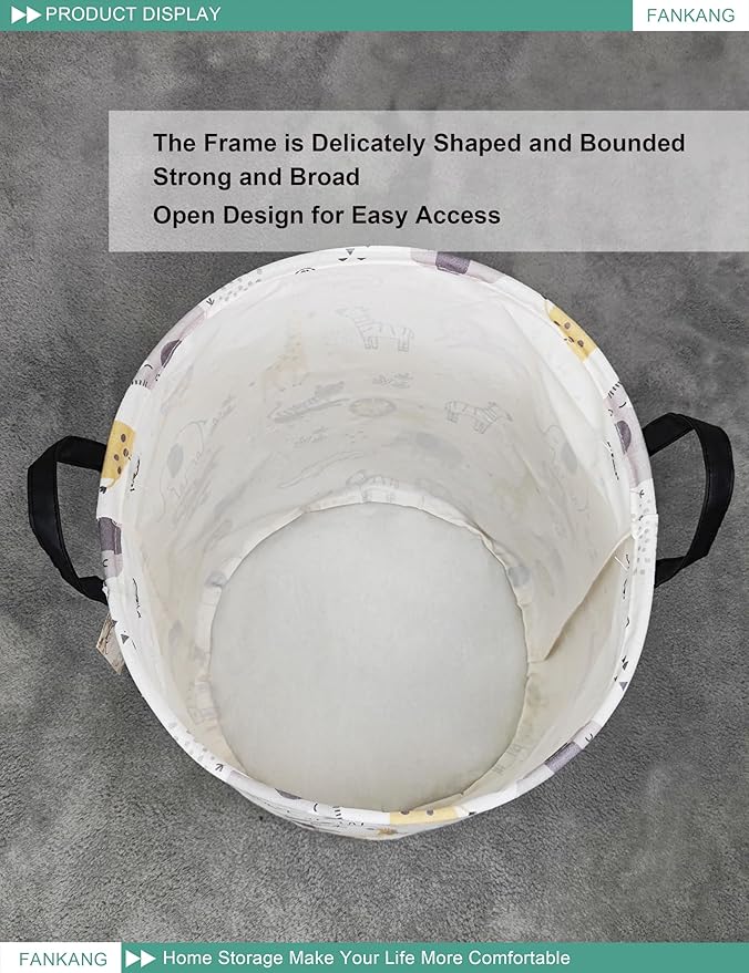 FANKANG Storage Basket, Nursery Hamper Canvas Laundry Basket Foldable with Waterproof PE Coating Large Storage Baskets for Kids Boys and Girls, Office, Bedroom, Clothes,Toys(Lovely Animals)