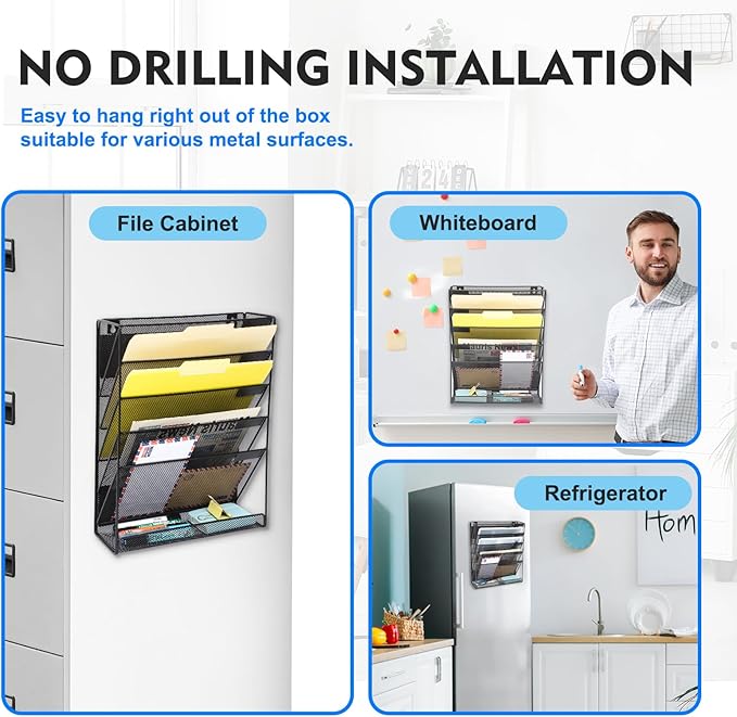 - Stable construction: The magnetic hanging office organizer is made of sturdy mesh with 6 practical slots