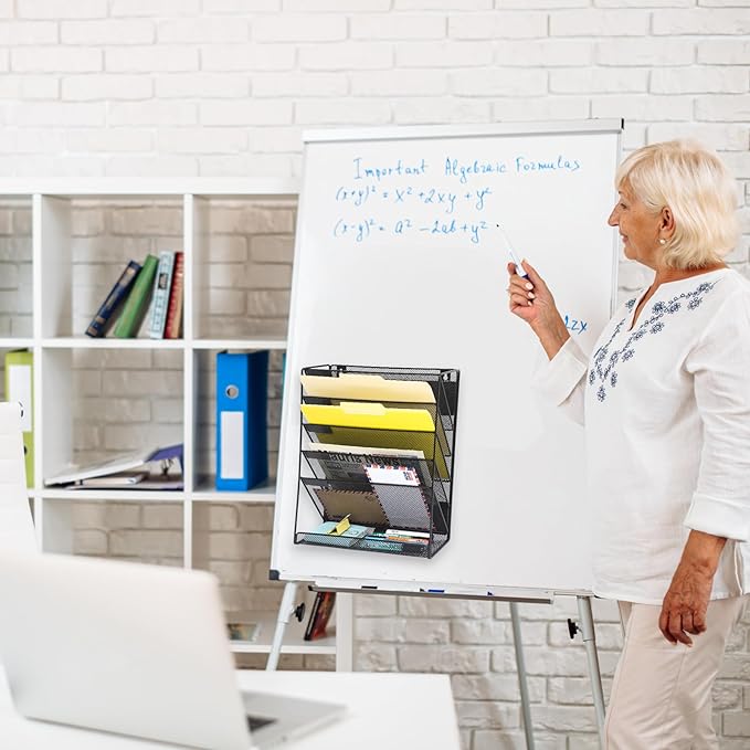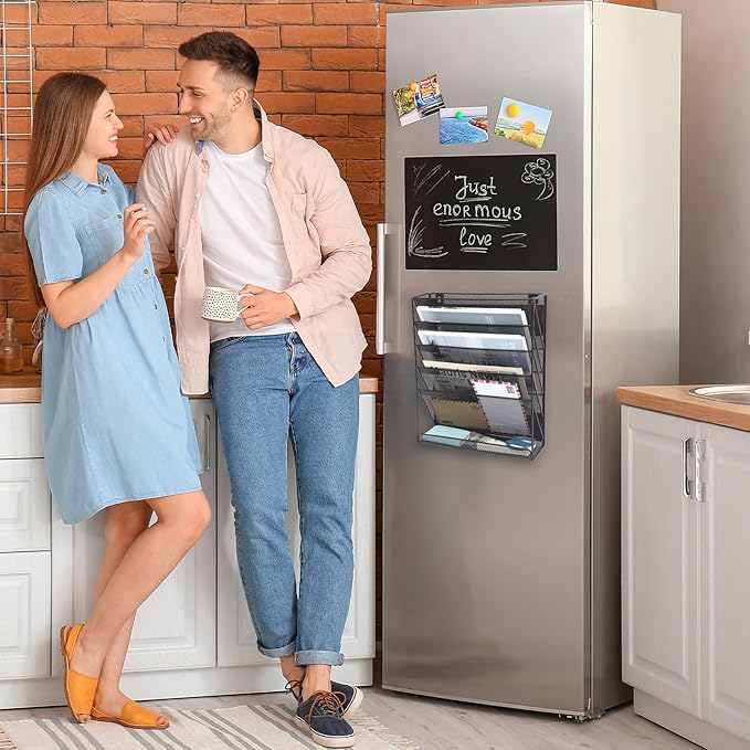 EASEPRES Magnetic File Organizer Mesh 6-Tier, Hanging Wall Mount File Organizer Vertical Holder Rack for Office Home, Black