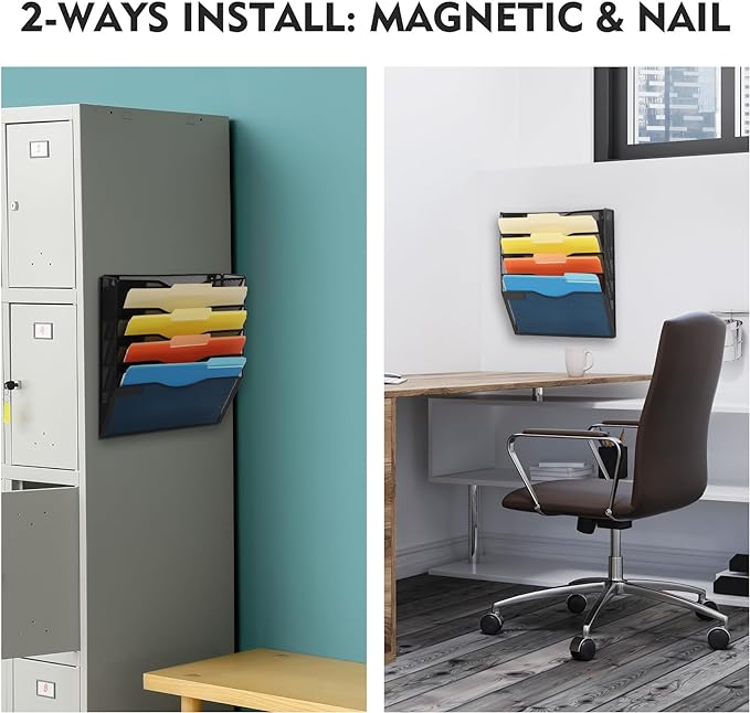 - 5 Pockets: The magnetic wall file organizer comes with mounting screws that can be easily mounted on the wall