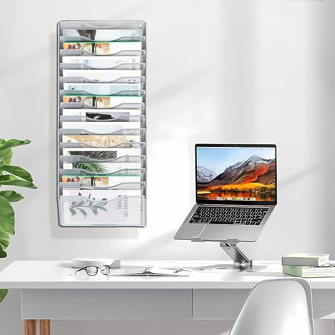 - Sturdy Metal Construction: Reinforced wall file organizer holds 5lbs/slot. Powder-coated mesh metal resists rust for long-term use in high-traffic areas.