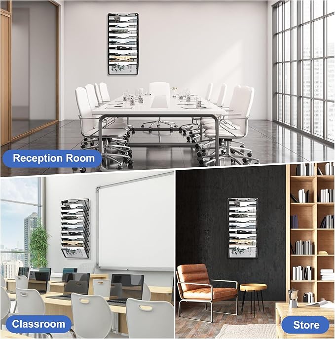- Sturdy Metal Construction: Reinforced wall file organizer holds 5lbs/slot. Powder-coated mesh metal resists rust for long-term use in high-traffic areas.