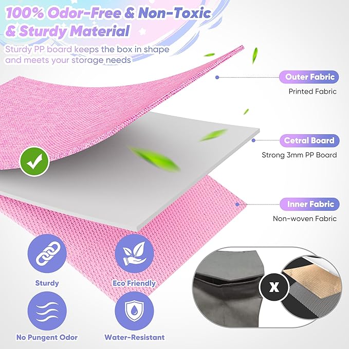 - High-quality & Safety Toy Organizer: Our fabric toy storage chest is made of 100% odorless, non-toxic materials, easy to clean and convenient for taking toys, it is the perfect storage solution after your child's game