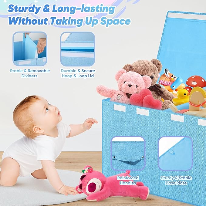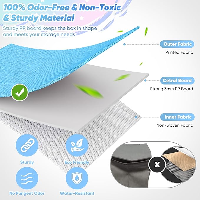 - High-quality & Safety Toy Organizer: Our fabric toy storage chest is made of 100% odorless, non-toxic materials, easy to clean and convenient for taking toys, it is the perfect storage solution after your child's game