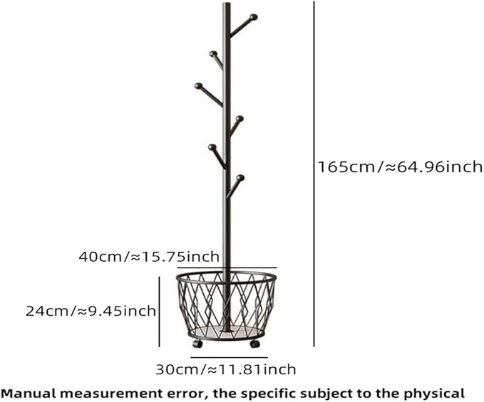 Freestanding Metal Coat Rack Stand with Basket Modern Organizer for Scarf Jacket Hat Bags Ideal for Home Entryway Bedroom Corner Stable and Moveable tree (black)