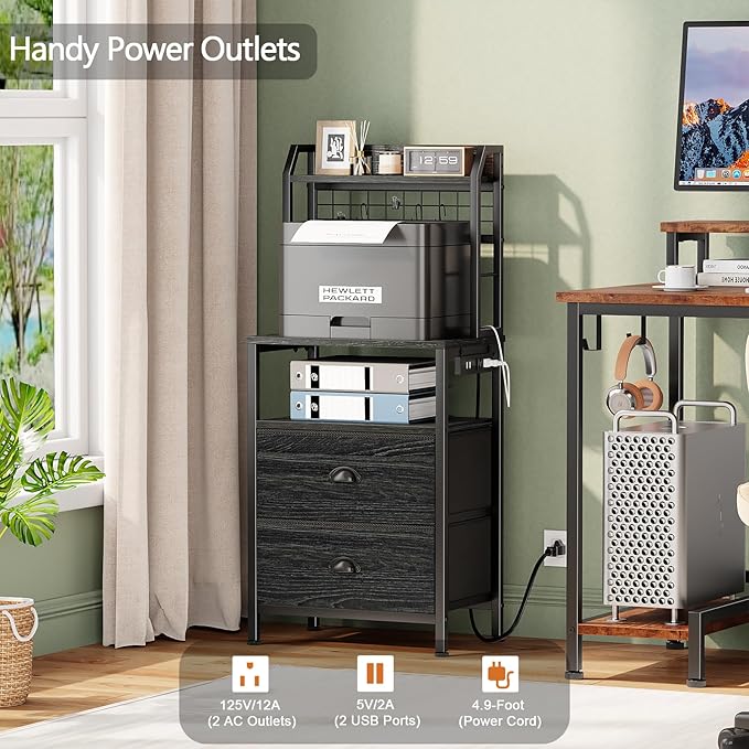 - Nightstand with Charging Station: Comes with built-in 2 outlets and 2 USB ports, as well as a 4.9 foot power cord. Provide a convenient charging place for your mobile phone, bluetooth earphones, watches, lamp and laptop, everything is within your arm's reach.