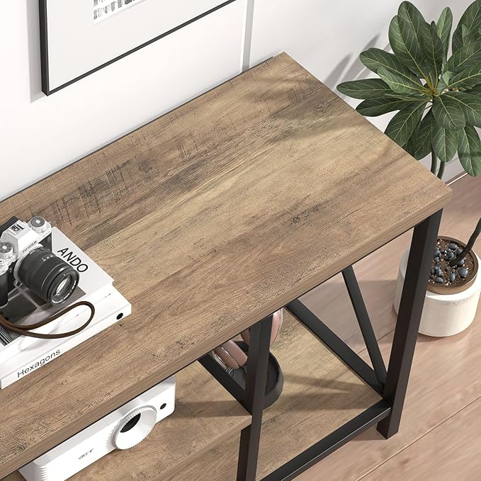 - Sturdy Construction: Constructed with a stable X-shaped metal frame and well-crafted shelves to ensure the stability of this entertainment center. A metal tube under the top shelf and an adjusting rod under the bottom shelf ensure high weight capacity, making it long-lasting for use.