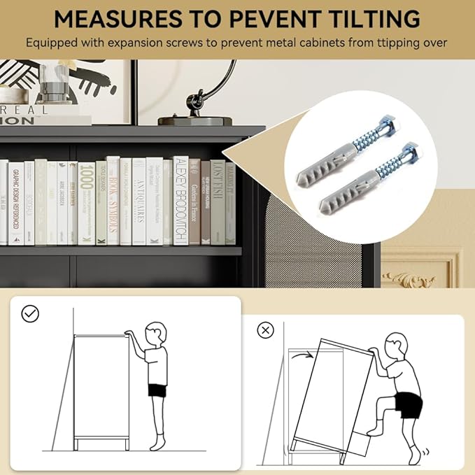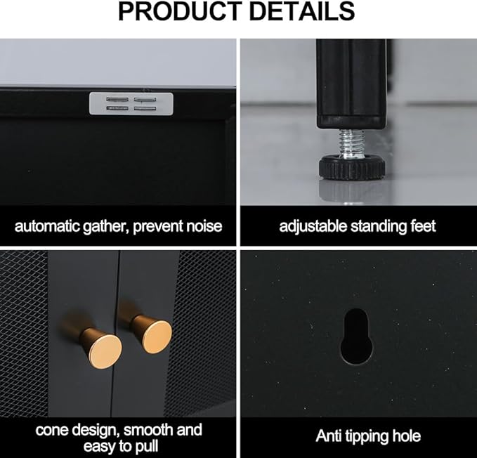 2 Doors Locker Metal Storage Cabinet, Storage Cabinet with Legs, Buffet Cabinet with Adjustable Shelves for Home, Office, Entryway and Hallway (Mesh Door Cabinet, Black)