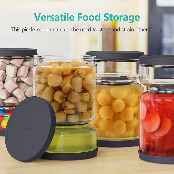 - Versatile Food Storage: This pickle keeper can also be used to store and strain other foods, such as olives, jalapeños, and other small snacks; this makes it a versatile gadget to your kitchen