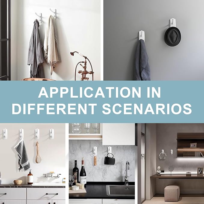 - NO DRILLING: Robe and towel heavy duty adhesive hooks are self-adhesive, suitable for hanging robes, towels, hats, keys, jackets, and coats without drilling holes and can be removed cleanly.