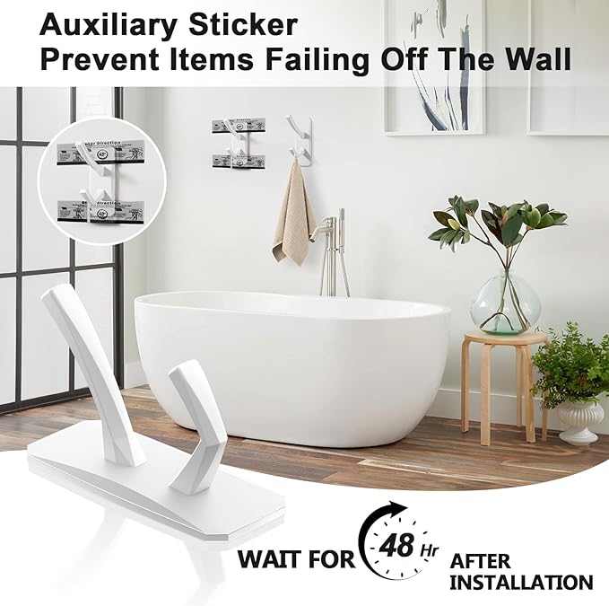 - EASY INSTALLATION: Stick the wall hook on the clean and smooth wall surface. Press the hook firmly against the wall for a few seconds In case of failing, use the Auxiliary Sticker according to the instructions to prevent items from sliding or falling off the wall. Please wait for 48 hours for the hook to fully set. Note: Not suitable for wallpaper or painted walls.