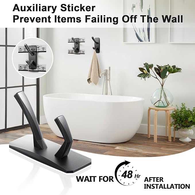 - EASY INSTALLATION: Stick the wall hook on the clean and smooth wall surface. Press the hook firmly against the wall for a few seconds In case of failing, use the Auxiliary Sticker according to the instructions to prevent items from sliding or falling off the wall. Please wait for 48 hours for the hook to fully set. Note: Not suitable for wallpaper or painted walls.