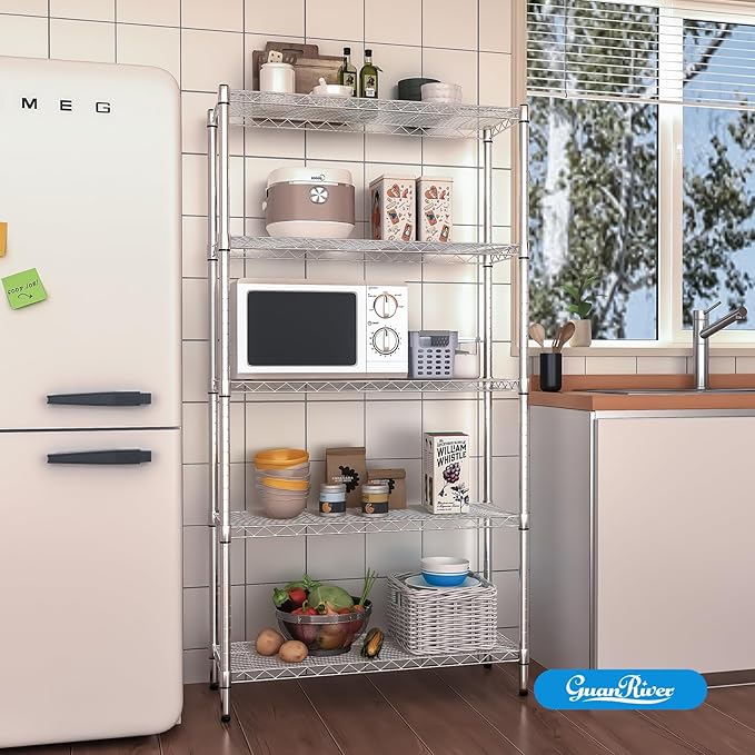 - 100% Assured Purchase,Quick Response,After-Sales Service within 24 hours: This 5 Tier Shelf is sturdy, smooth and durable, we guarantee you will love this Wire Shelving. However, if you are not satisfied with this item or encounter any questions about missing parts or assembly, please feel free to contact us through the "Buyer Message" function, our After-Sales team will respond quickly within 24 hours and will provide you with the most professional technical support and the best solutions