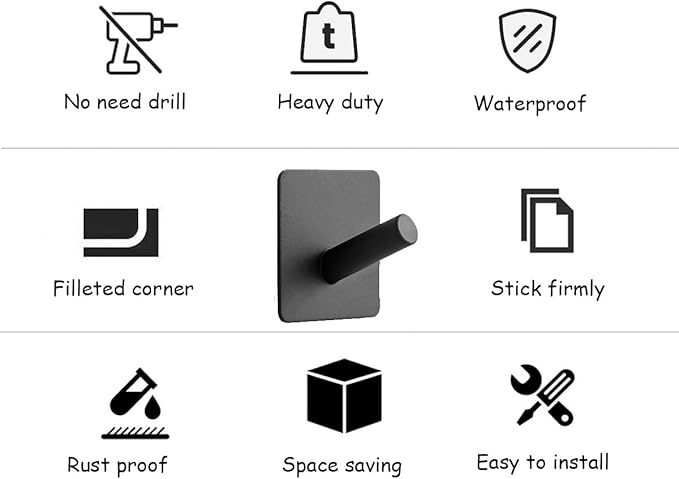 - Sturdy and Durable: EDMILE adhesive wall hooks is made of stainless steel with matte finish. Provides a secure and strong hold for your belongings. Black stick on hooks for hanging sleek and modern look, matches various decor with bathroom, bedroom, kitchen, office;