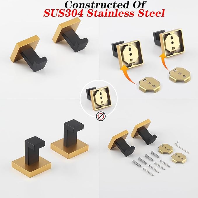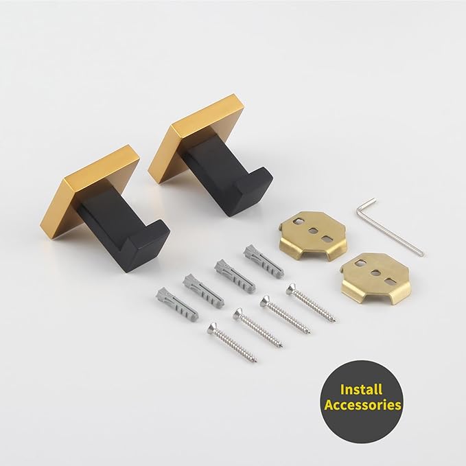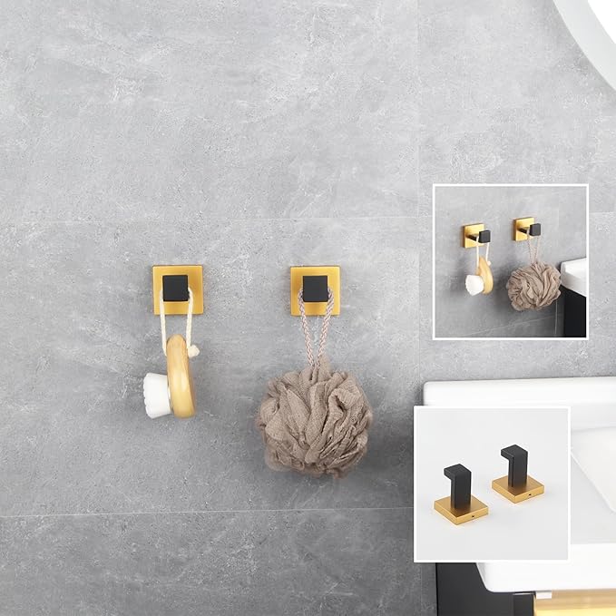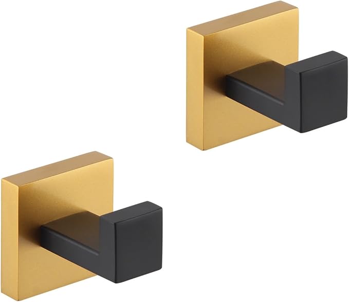 GERZWY Bath Single Coat Hook Stainless Steel Wall Mounted Robe Clothes Hook for Bathroom Modern Style (Black & Gold) FG1607-2BD