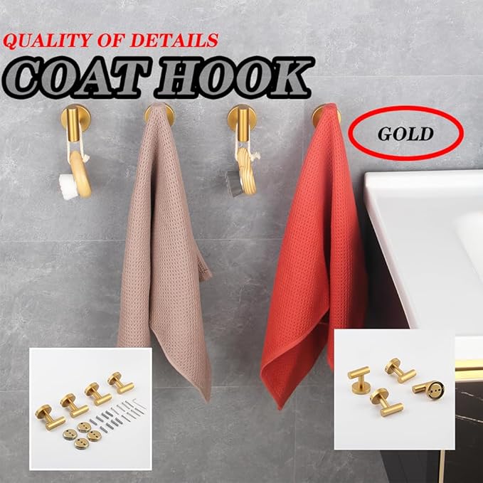 GERZWY Gold Stainless Steel Towel Hook Wall Mounted Robe Hook Heavy Duty Coat Hook Luxury Hooks for Bathroom Hotel 4 Pack AG1307B-BE