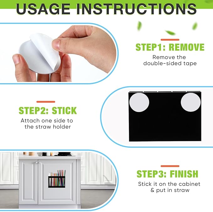 - Complete Package for Easy Installation: the package includes 1 acrylic straw holder and 4 pieces of double sided adhesive tapes (straw not include); The tapes provide a secure and stable setup, ensuring the straw holder stay securely even in busy areas; The outer layer of the product has a plastic film and auxiliary tape; The plastic film needs to be torn off before use; The tape is applied to assist in fixing the product and can also be torn off without affecting the stability of the product
