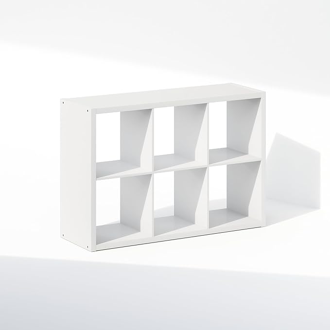 Furinno Cubic Open Back Multipurpose Clothing & Closet Storage Organizer Shelf, 6-Cube, White