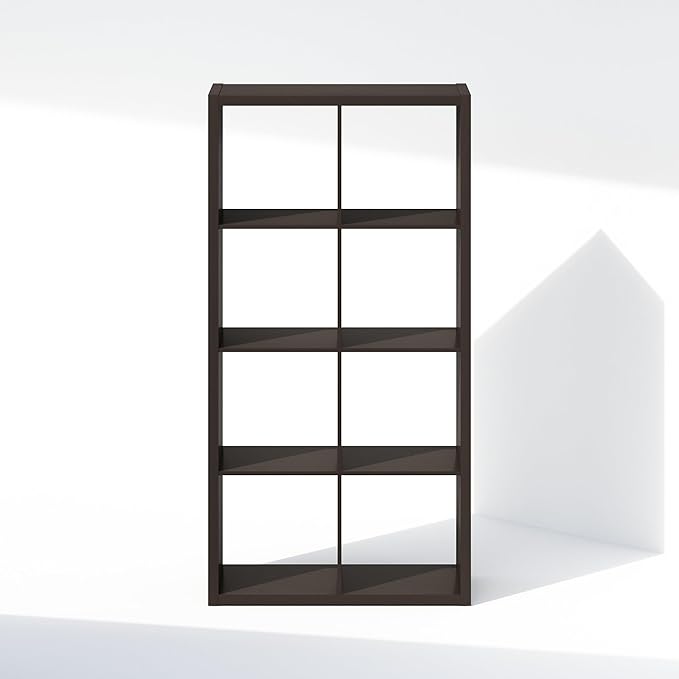 Furinno Cubic Open Back Multipurpose Clothing & Closet Storage Organizer Shelf, 8-Cube, Black Dark Oak