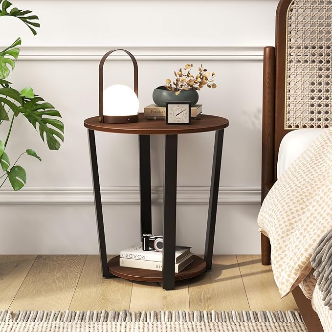 - [2-Tier Storage Space]: The 2-tier round end table enlarges storage and display space for cups, vases, magazines and other ornaments. With this side table, you can keep sundries within reach and prevent clutters.