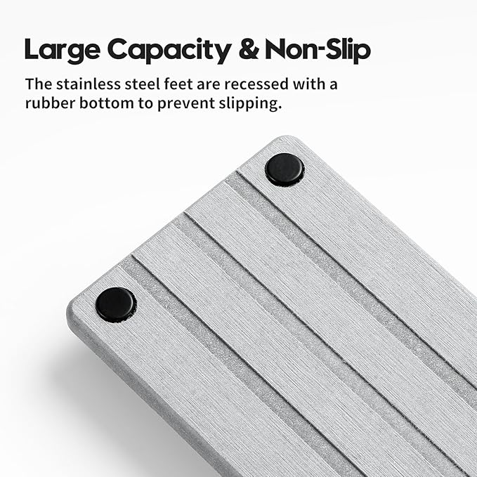 - 【Size and Capacity】This sink caddy has a larger capacity due to the recessed feet. The 4 feet are made of high-grade stainless steel material with non-slip rubber feet, rust-proof. Size: 10"L x 4"W x 1"H. Set of 2 PCS