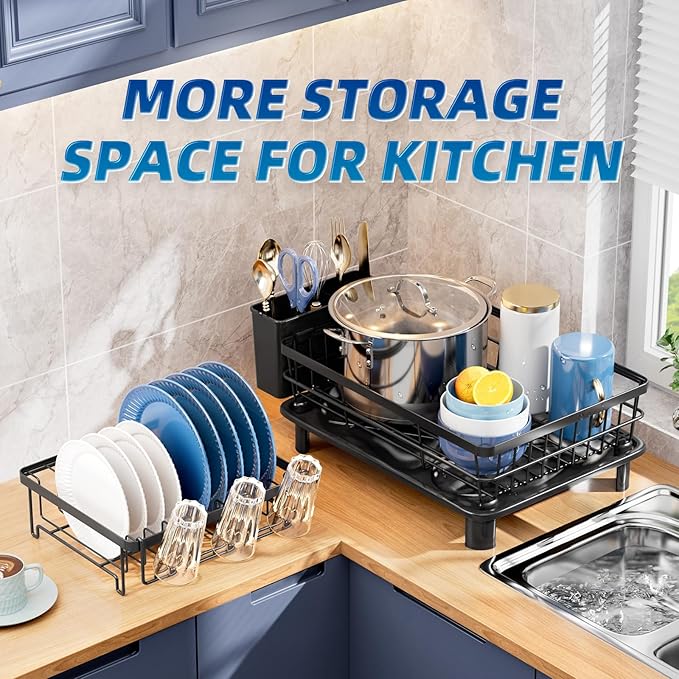 - HIGH-QUALITY MATERIAL: GAOKASE dish drying rack is made of high-quality metal, and the surface is covered with anti-rust coating, which can prevent the dish drying rack from rusting and deformation, Ideal for long term use in the kitchen. Make your kitchen work easier.The cutlery rack is designed to save 40% of your storage space.