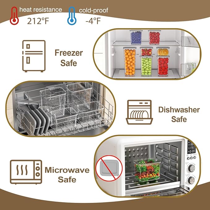 - HIGH QUALITY MATERIAL: Food kitchen containers storage set bottle is made of PP material which is easy to clean, just wipe it gently with a damp cloth to keep it clean and tidy. Dishwasher/refrigerator/microwave safe. Note: The lids cannot be used in the microwave