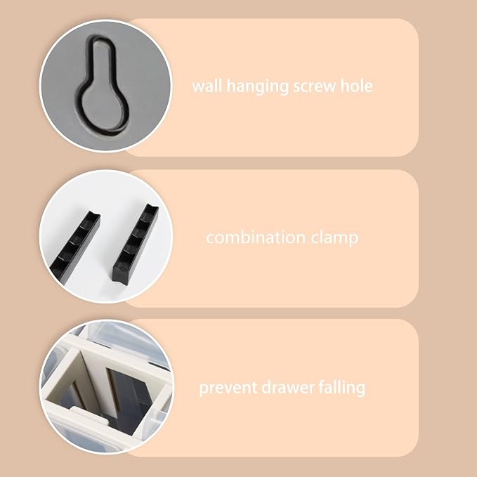 - Stacked or wall-mounted: The screw organizer comes with a rod to stack the drawers, see the picture. The drawer has screw holes on the back for hanging on the wall. (This product does not contain screws)