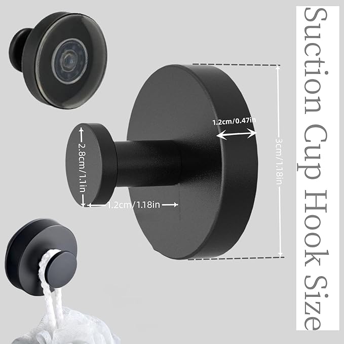- NO-DRILL SUCTION CUP SHOWER HOOK: This upgraded wall hooks features no-drill and no-stick adhesive adsorption technology combined with a modern, minimalist look that won't damage your walls, Heavy duty suction cup hooks blend in with your home décor for the perfect combination of functionality and aesthetics