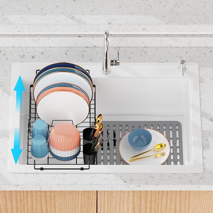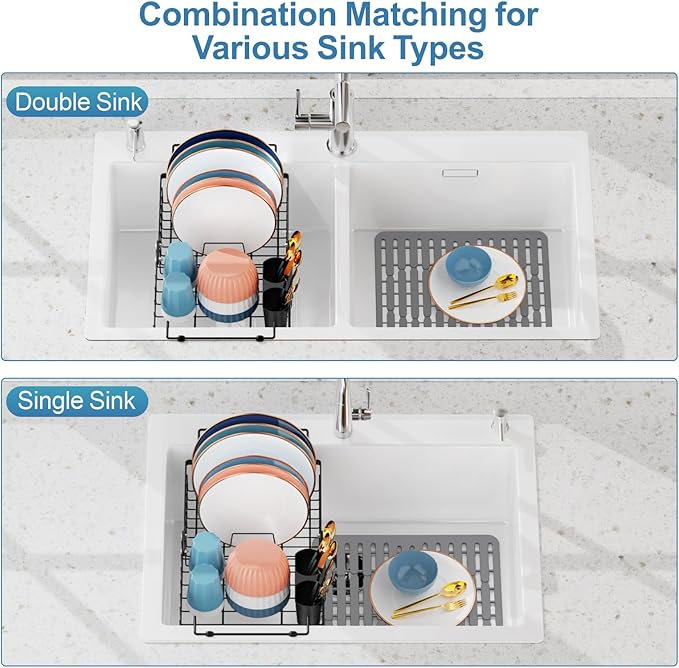 - [Easy Install & Scratch-Free] - Protection Setup is a breeze—no tools or complicated instructions required! With non-slip protective feet, this versatile dish drying rack sits firmly inside sink or on countertops, preventing scratches and enhancing stability during everyday use.