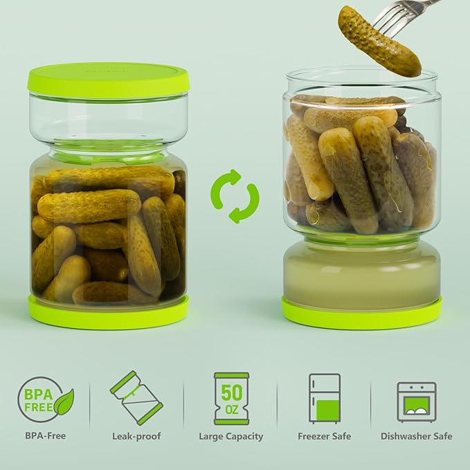 - Versatile Food Storage: This pickle keeper can also be used to store and strain other foods, such as olives, jalapeños, and other small snacks; this makes it a versatile gadget to your kitchen
