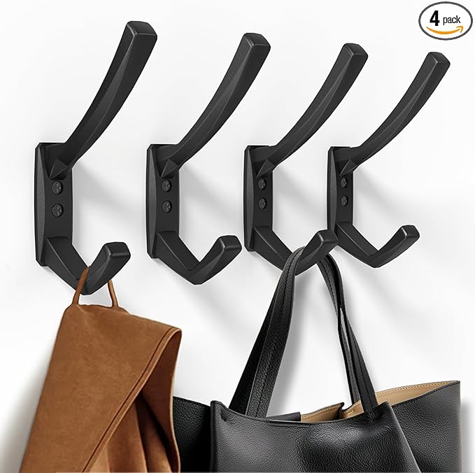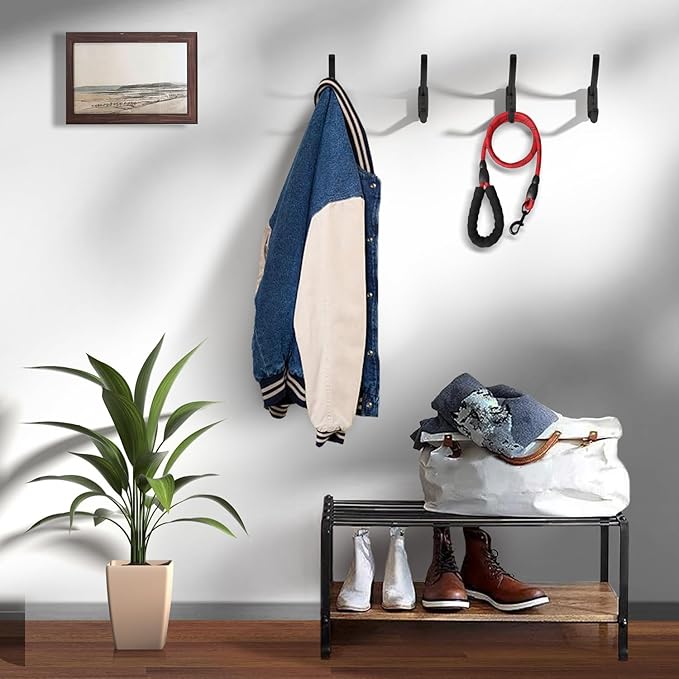 - Large Hooks for Hanging - The length of 5.7 inches and double hooks design make it ideal for hanging bulky winter coats, backpacks, swimwear, and bathrobes. One hook holds the jacket, and the other hangs the bag, keys, etc. You can hang twice as many items.