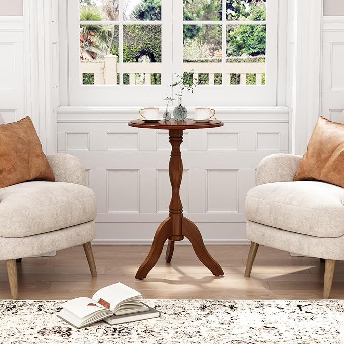 HLR Round Small End Table, Wooden Pedestal Side Coffee Tables, Vintage Accent Nightstand for Living Room, Bedroom, Entryway (1, Walnut)