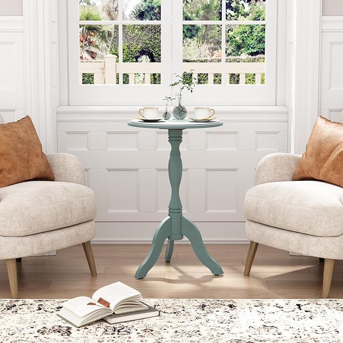 HLR Round Small End Table, Wooden Pedestal Side Coffee Tables, Vintage Accent Nightstand for Living Room, Bedroom, Entryway (1, Light Blue)