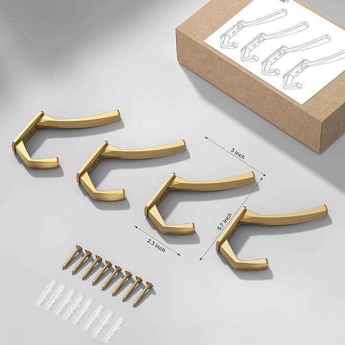 Heavy Duty Wall Hooks, 5.7 Inch Large Coat Hooks, 6 Packs Towel Hooks for Hanging in Bathroom, Bedroom, Entryway, Kitchen, etc (Gold, 4 Pack)