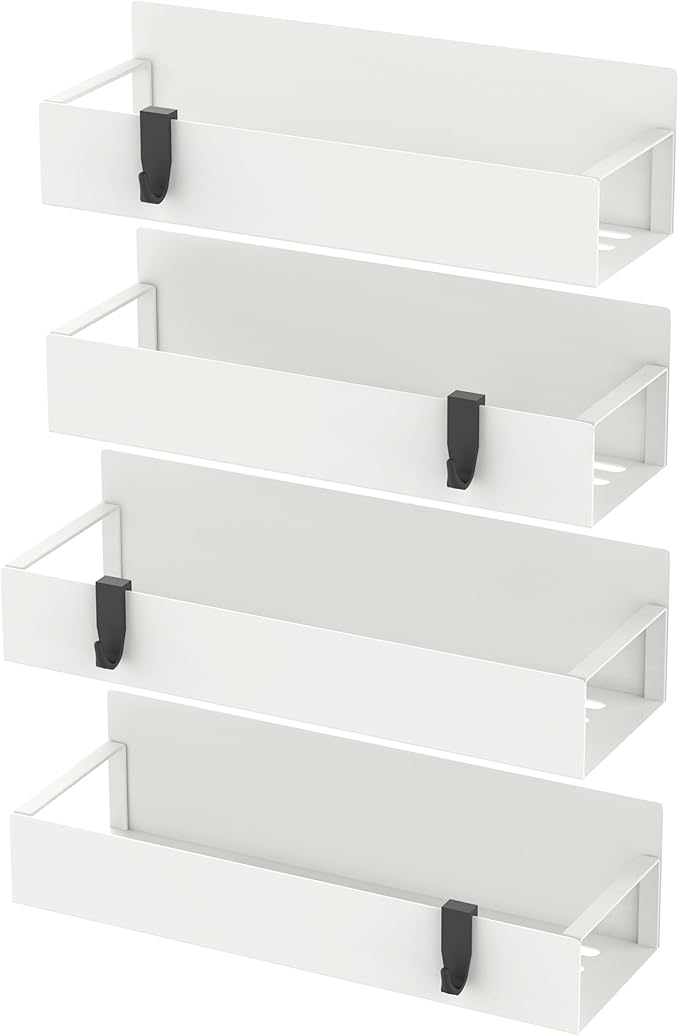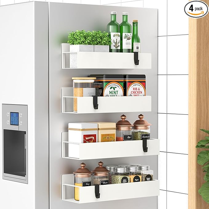 4 Pack Magnetic Spice Storage Rack Organizer for Refrigerator and Oven, Cream White Fridge Organizers and Storage