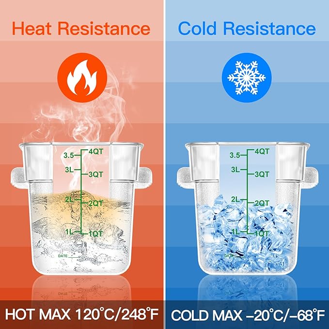 - Sturdy and practical:The commercial food storage containers is made of high-quality food-grade material, which is sturdy and easy to clean, and the scale of the container with lids is measured in quarts and liters for accurate measurements. In addition, the container is marked with a date so that you can keep track of the status of your food.