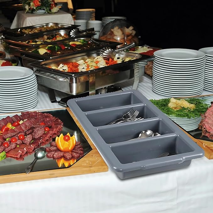 4 Pack Plastic Commercial Cutlery Tray, 4-Compartment Silverware Organizer Bin, Grey