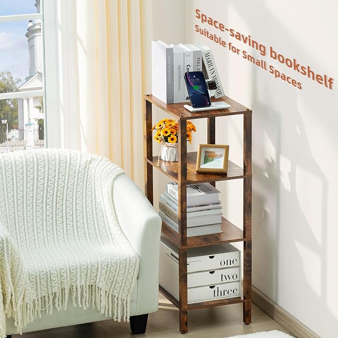 - ใ๐๐ถ๐๐ ๐๐๐ฒ๐ฟ๐๐๐ต๐ฒ๐ฟ๐ฒใThis 4-tier tall bookshelf has a stylish minimalist design and is versatile, place this industrial style slim bookcase in your home, office or anywhere you need extra storage space to display and organize books, plants, or other decorative items