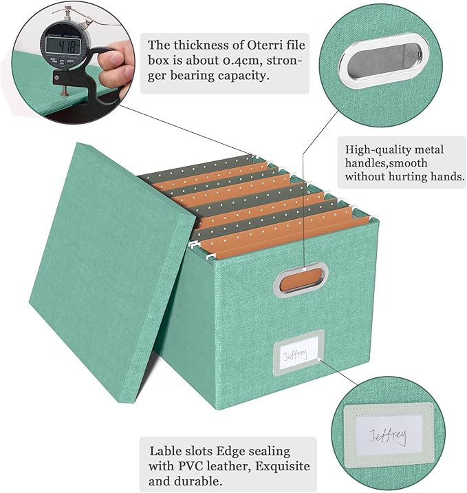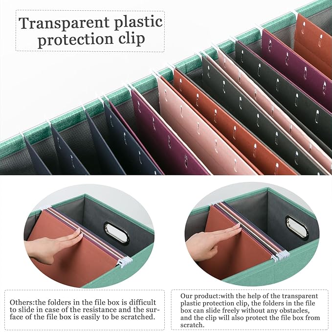 - Clear Sliding Bars: Every file storage box has two Clear sliding bars, Easy to slide file folders with no friction, and protecting the edge of the box, Make your file box beautiful and durable.