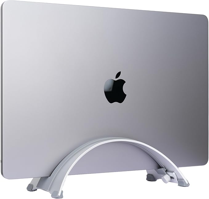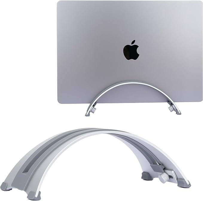Adjustable Vertical Laptop Stand - 6061 Aluminum, CNC Precision, Anodized Finish, Fits All Laptops Including 17-inch, Ventilated Design, Anti-Slip Silicone Pads, ARC Shaped Stands