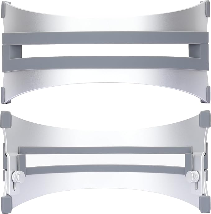 - High-Quality Materials & Elegant Design: Crafted from 6061 aluminum alloy, this laptop stand features a sophisticated anodized finish and fine sandblasting treatment, matching the sleek aesthetics of MacBook surfaces. The elegant curved design enhances the visual appeal of your workspace.